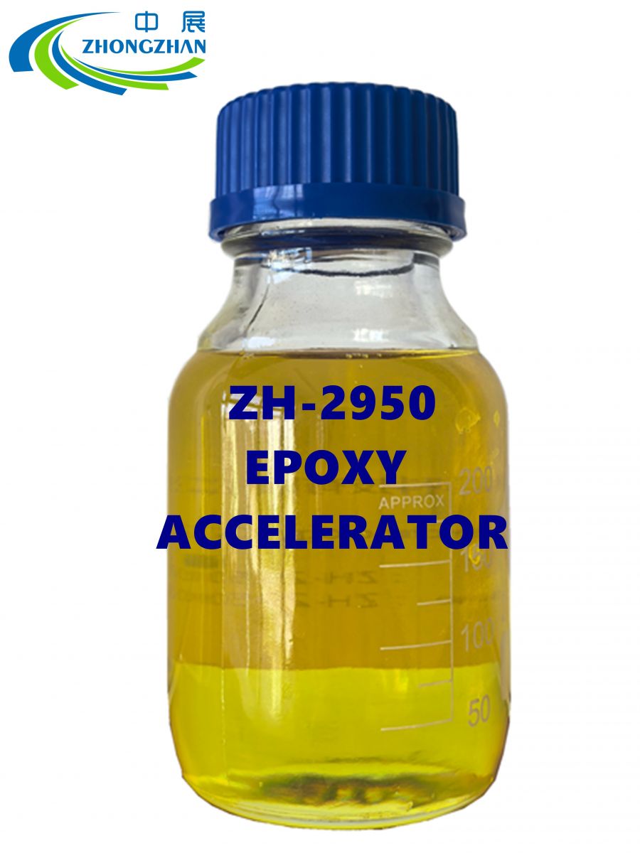 ZH2950 epoxy accelerator (such as Huntsman Accelerator 2950 or Yueyang Zhongzhan Technology ZH2950) is a high-efficiency co-reactive accelerator. Its core function is to significantly shorten curing time and improve system performance by catalyzing the cross-linking reaction between epoxy groups and curing agents. Its application fields cover multiple industrial scenarios, as follows: